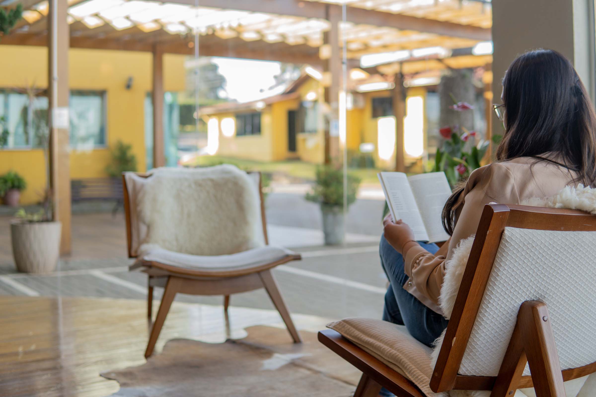 Um bom livro em um ambiente amplo e iluminado. Escolha sua leitura e desfrute desse momento.