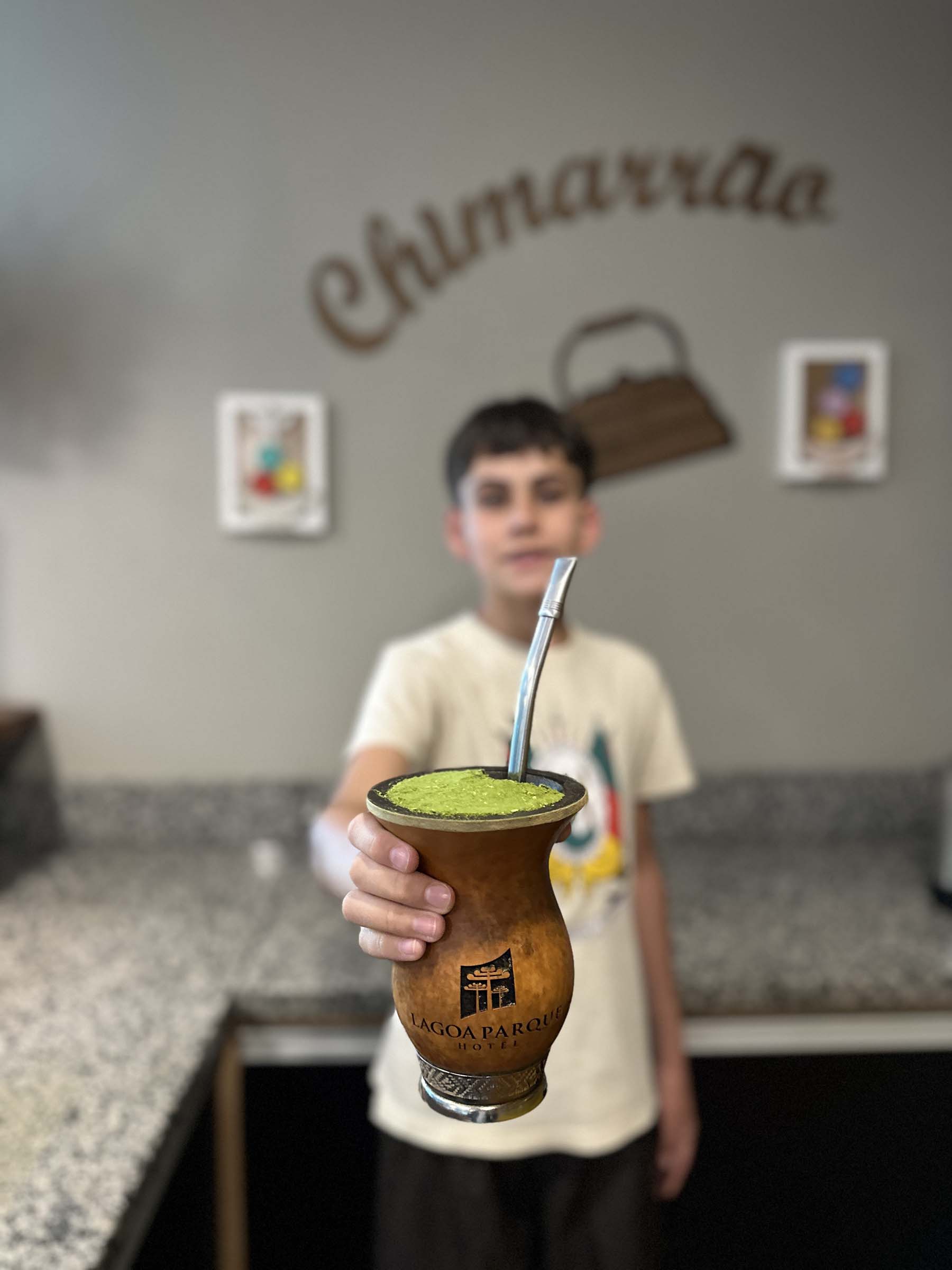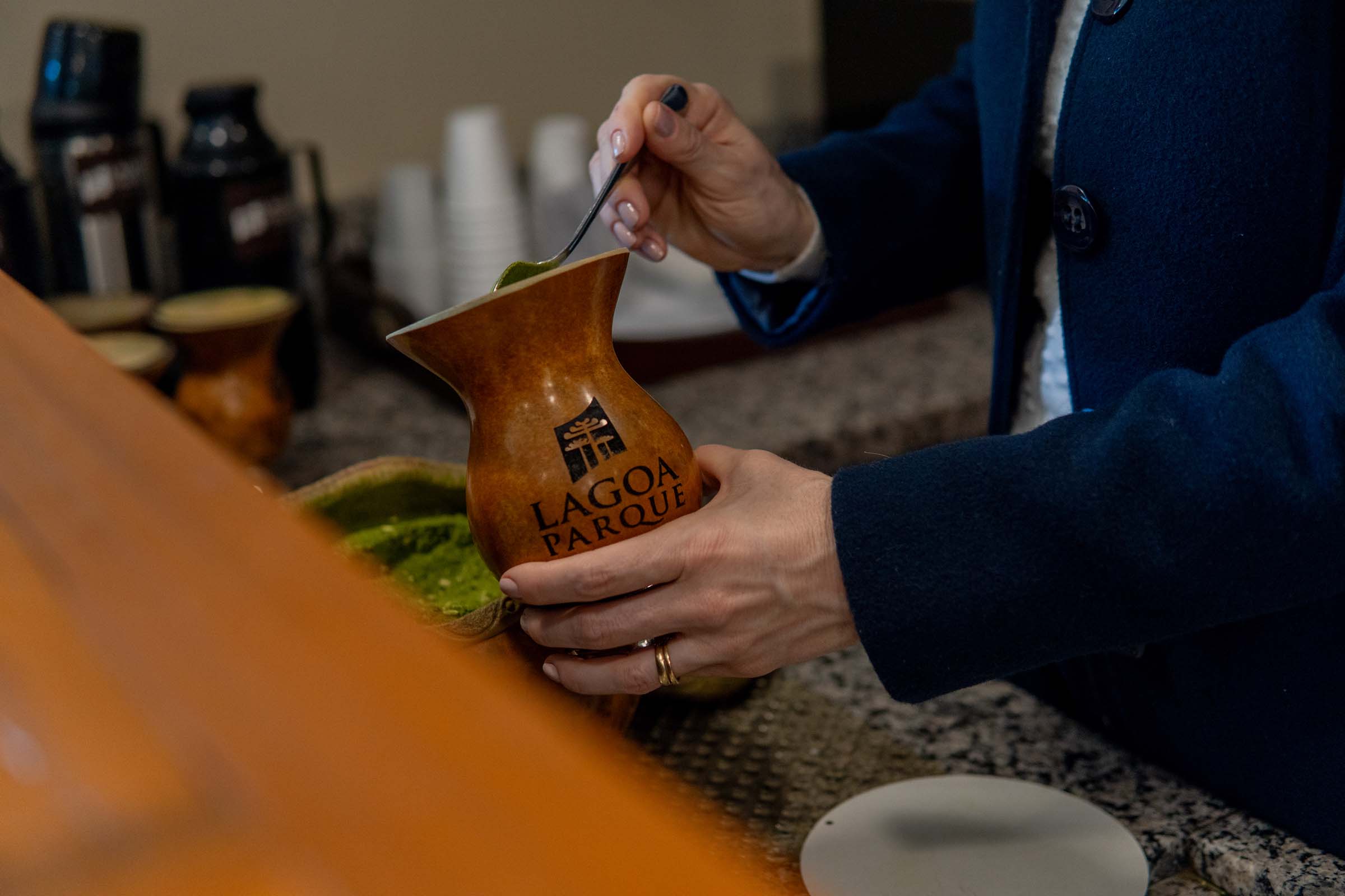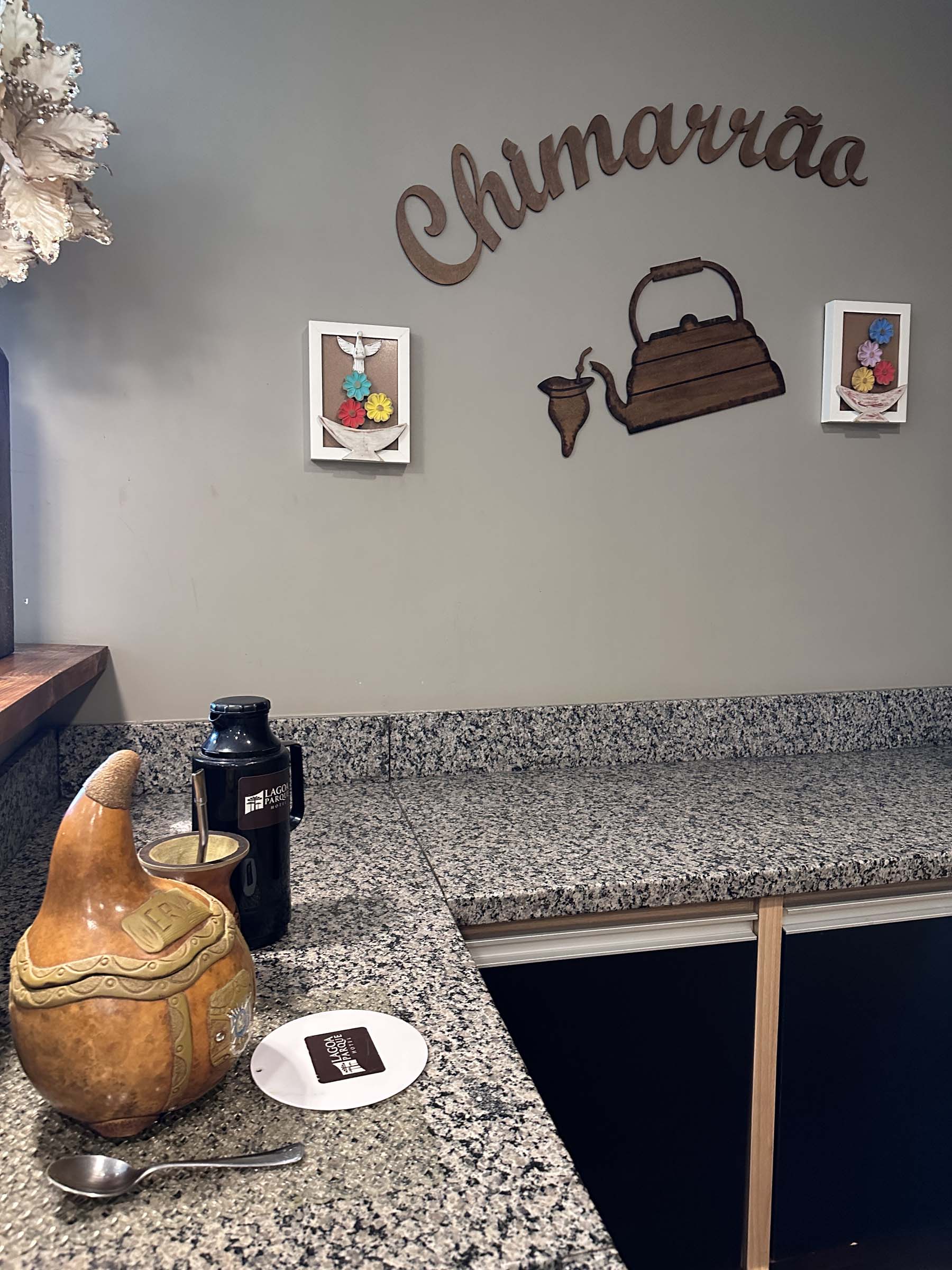Espaço exclusivo com todos os itens necessários para preparar o seu chimarrão: cuia, bomba, erva mate, térmica e chaleira para aquecer sua água. Uma cortesia do hotel para que você viva a autêntica cultura gaúcha.