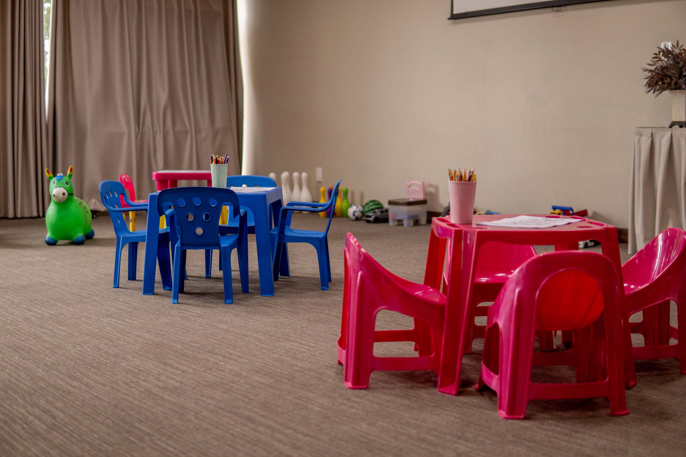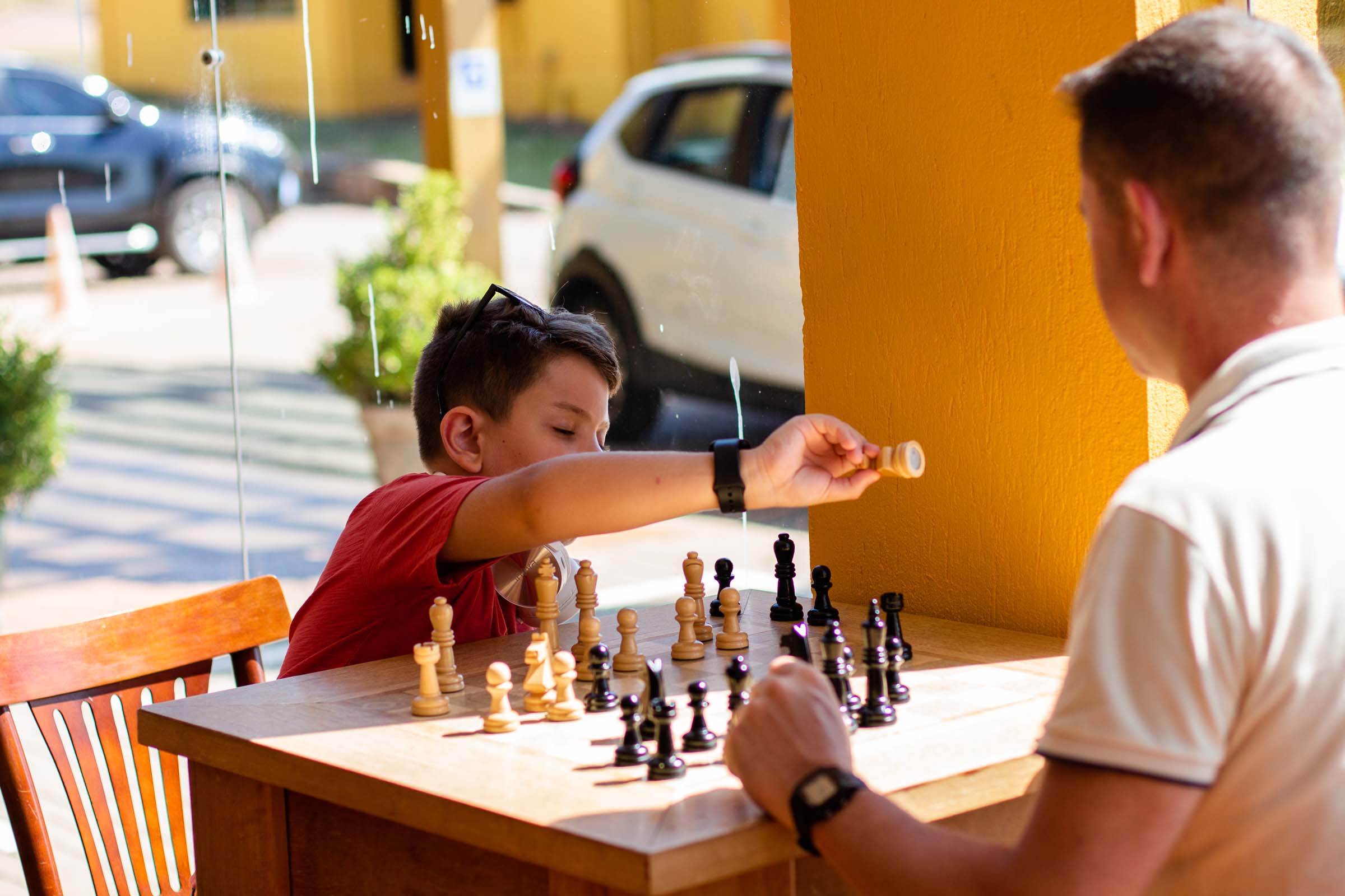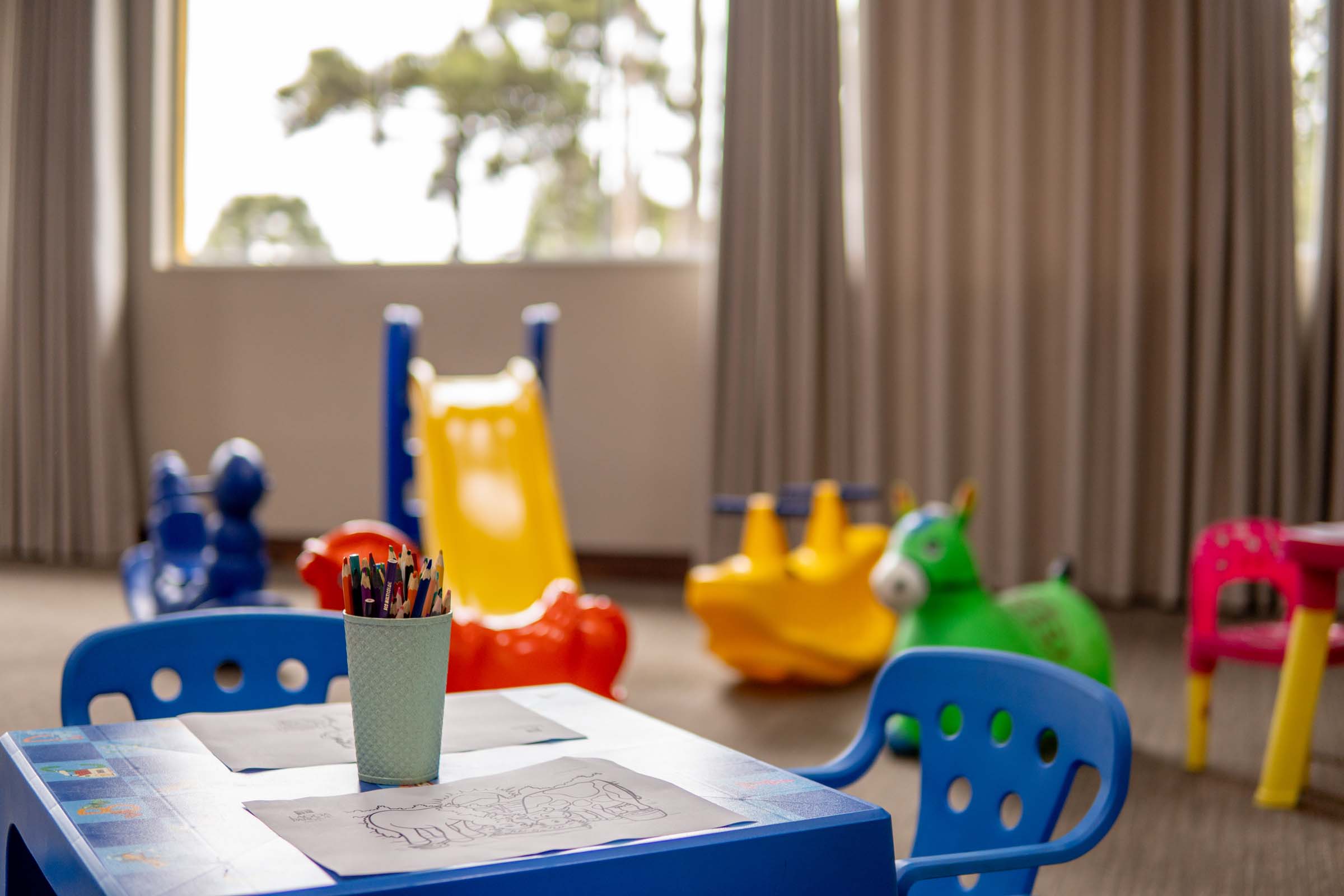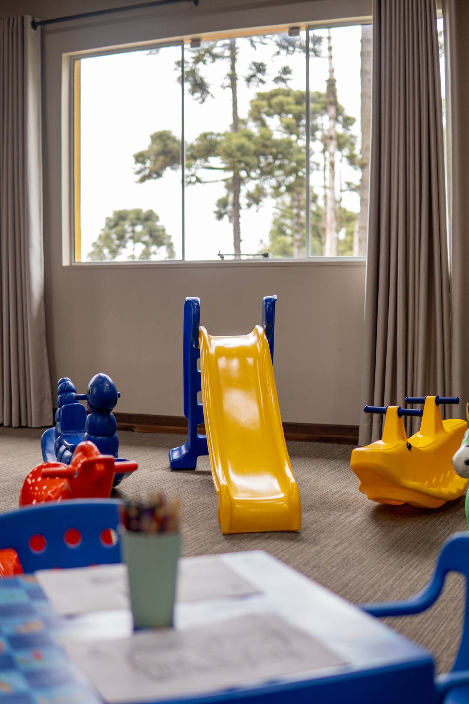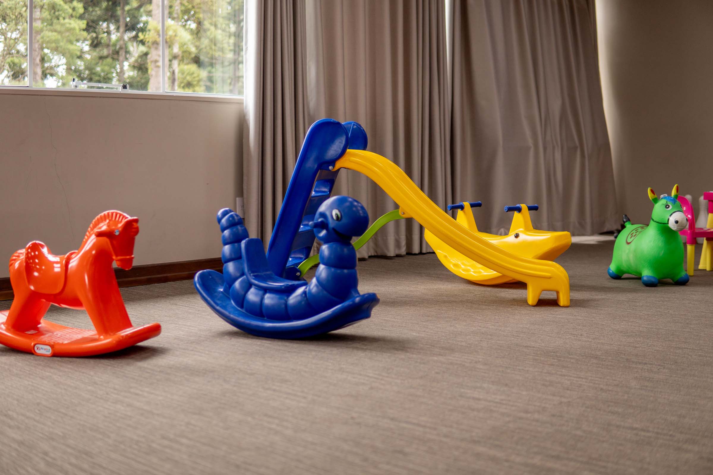 Nos dias de semana contamos com um pequeno espaço para a criançada. Aos finais de semana, uma sala mais ampla é montada com brinquedos, telão e mesas para jogos de cartas e tabuleiros.