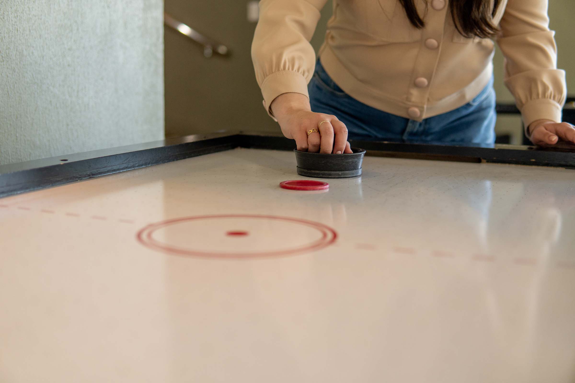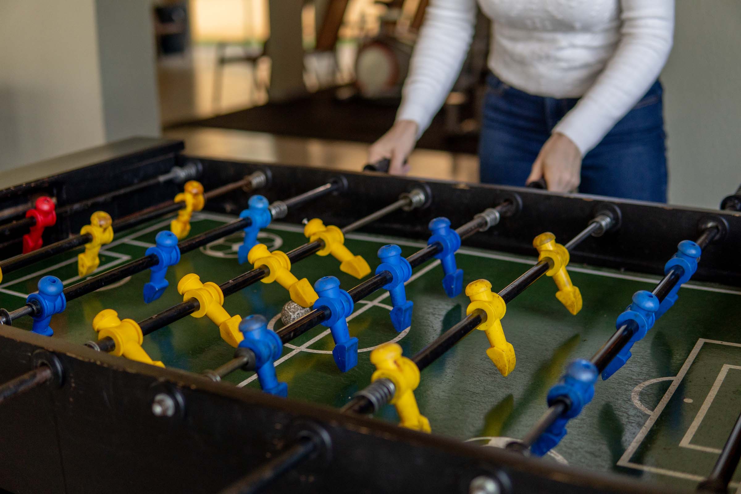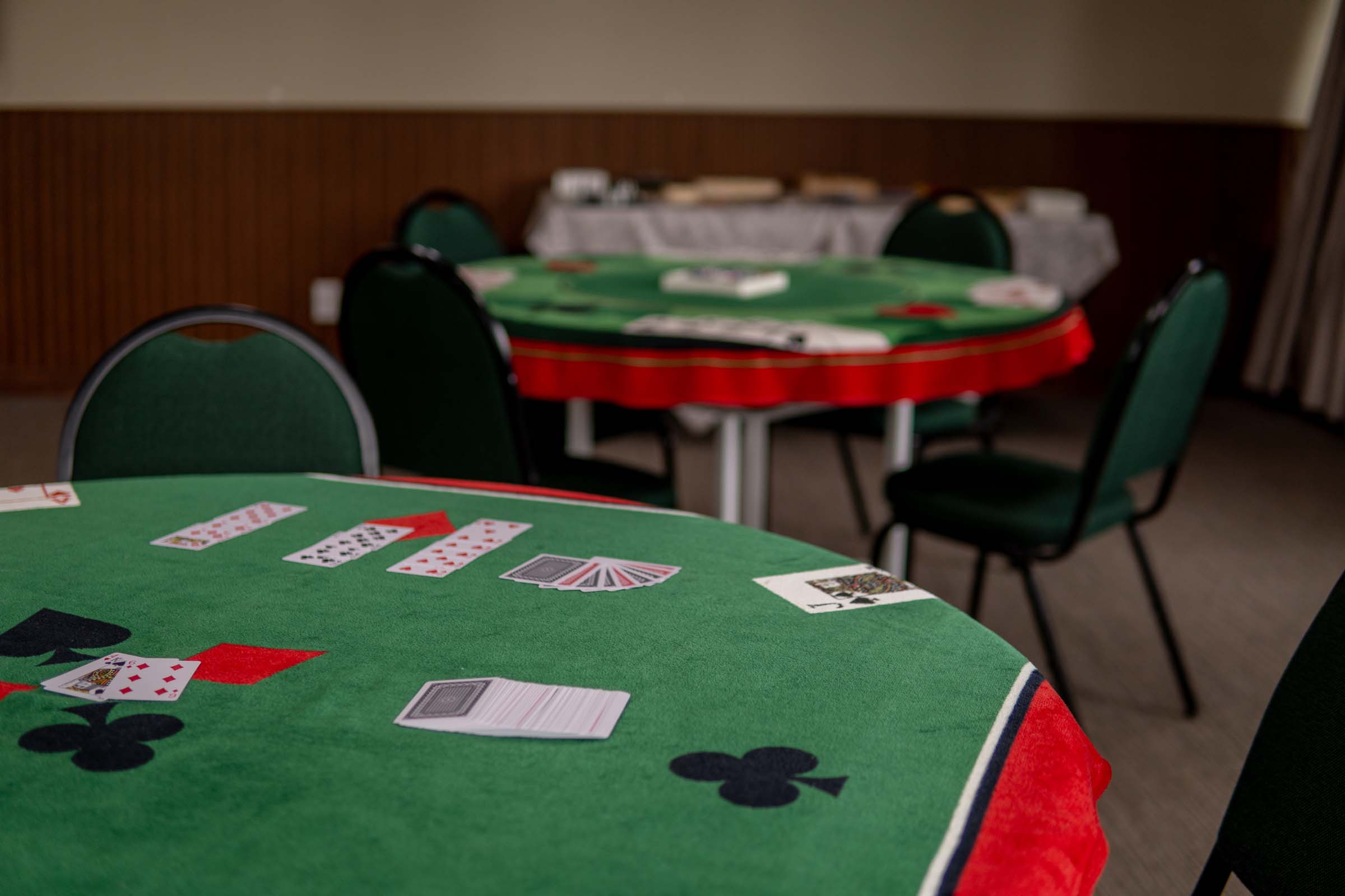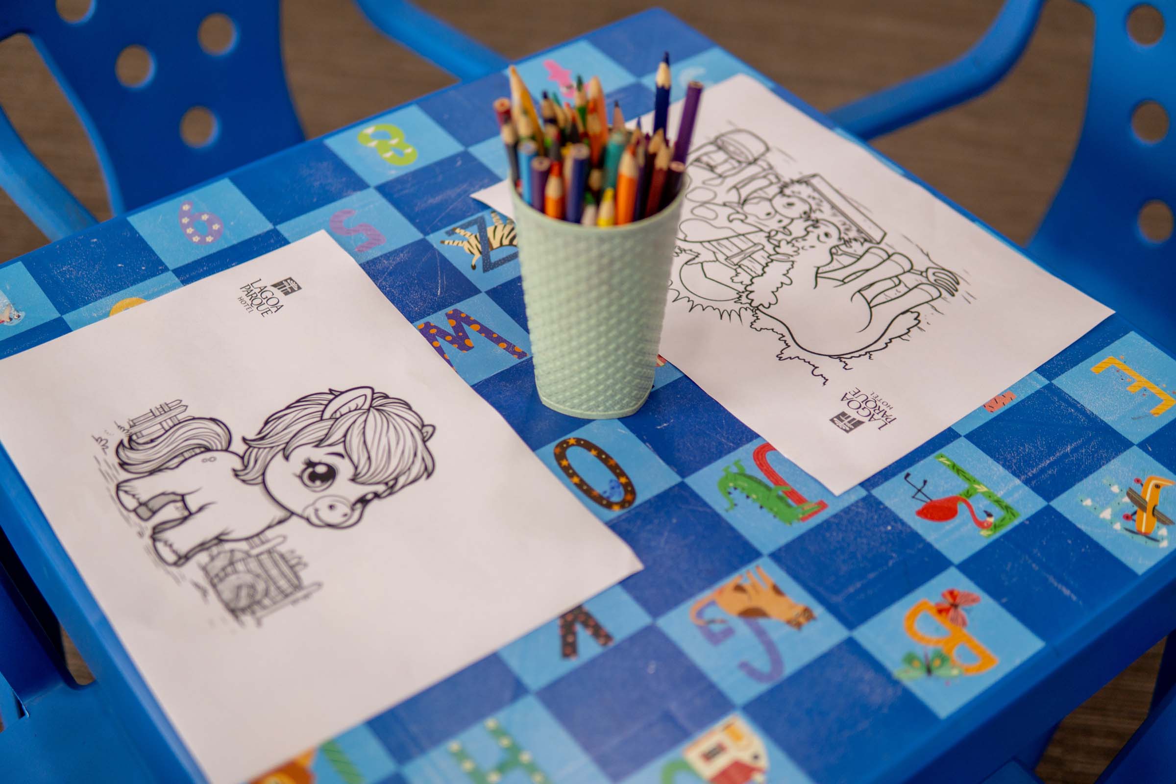 Nos dias de semana contamos com um pequeno espaço para a criançada. Aos finais de semana, uma sala mais ampla é montada com brinquedos, telão e mesas para jogos de cartas e tabuleiros.