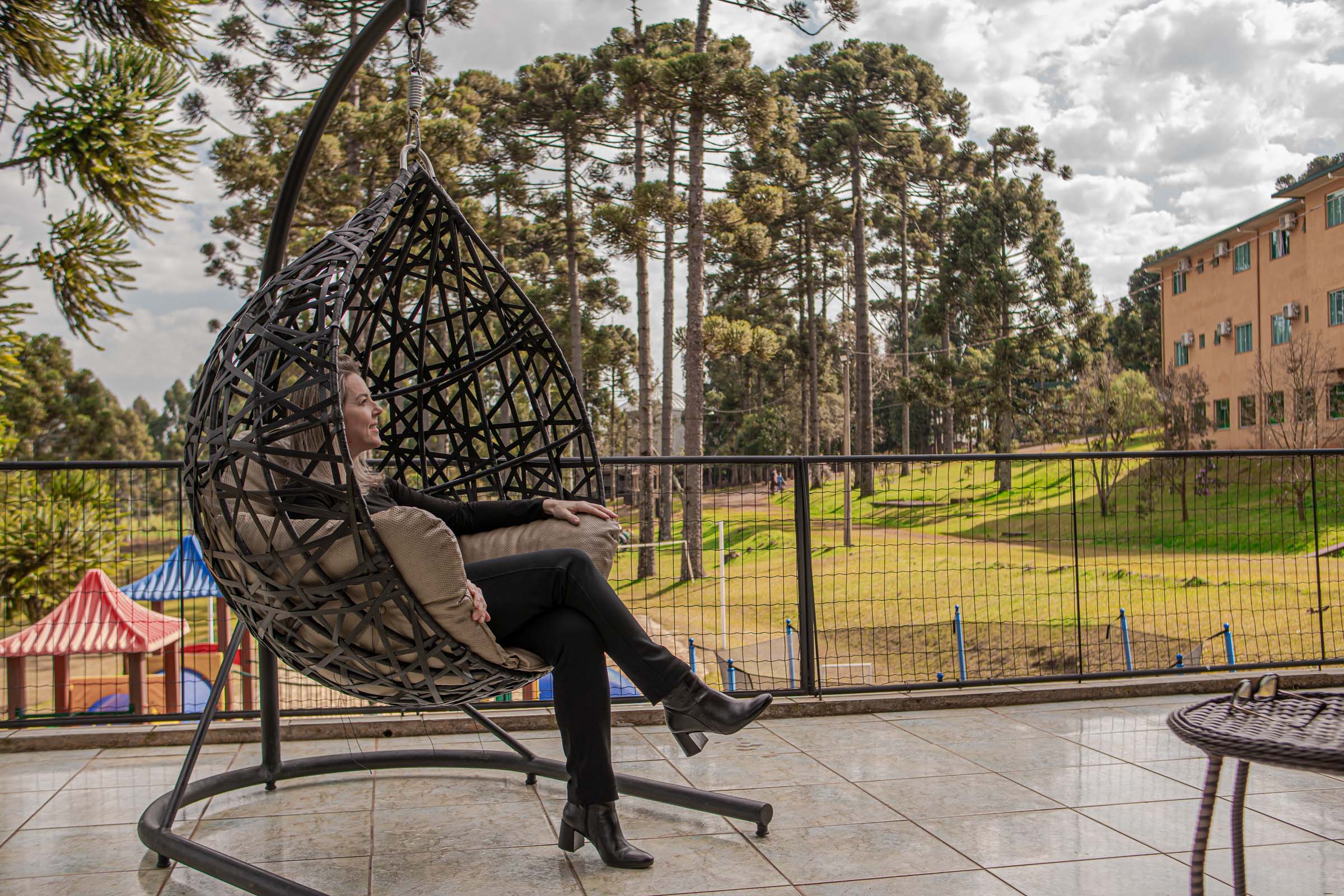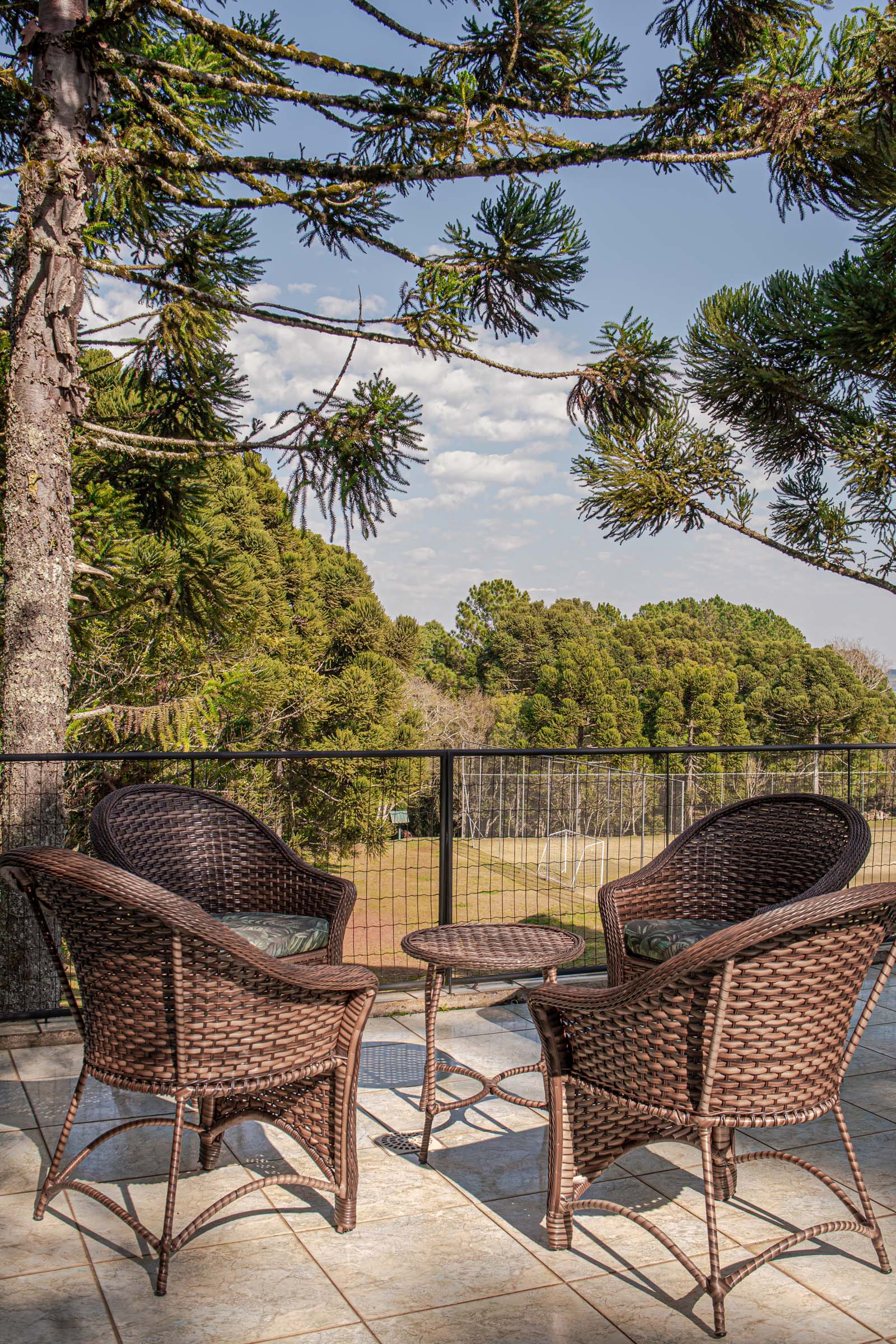 Um espaço equipado com churrasqueira, para que você possa preparar o seu próprio churrasco enquanto aprecia a paisagem natural. Afinal, estamos na capital nacional do churrasco, e aqui, você tem a oportunidade de saborear a carne de Lagoa, famosa por sua qualidade. O espaço ainda conta com uma charmosa área externa com cadeiras e balanço, perfeita para relaxar e registrar boas lembranças.